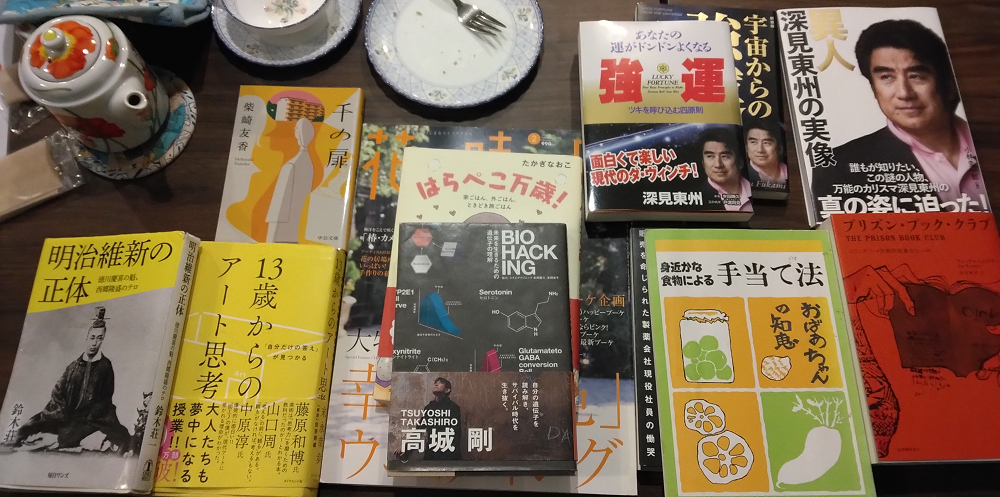 初参加の方2名を含め、総勢5名で賑やかに語り合いました。お勧め本が紹介されるにつれ、幕末に始まり、健康談義、自己啓発へとテーマが次々に変わっていくところがドラマティックで面白かったです。