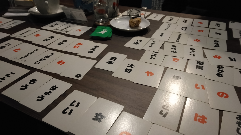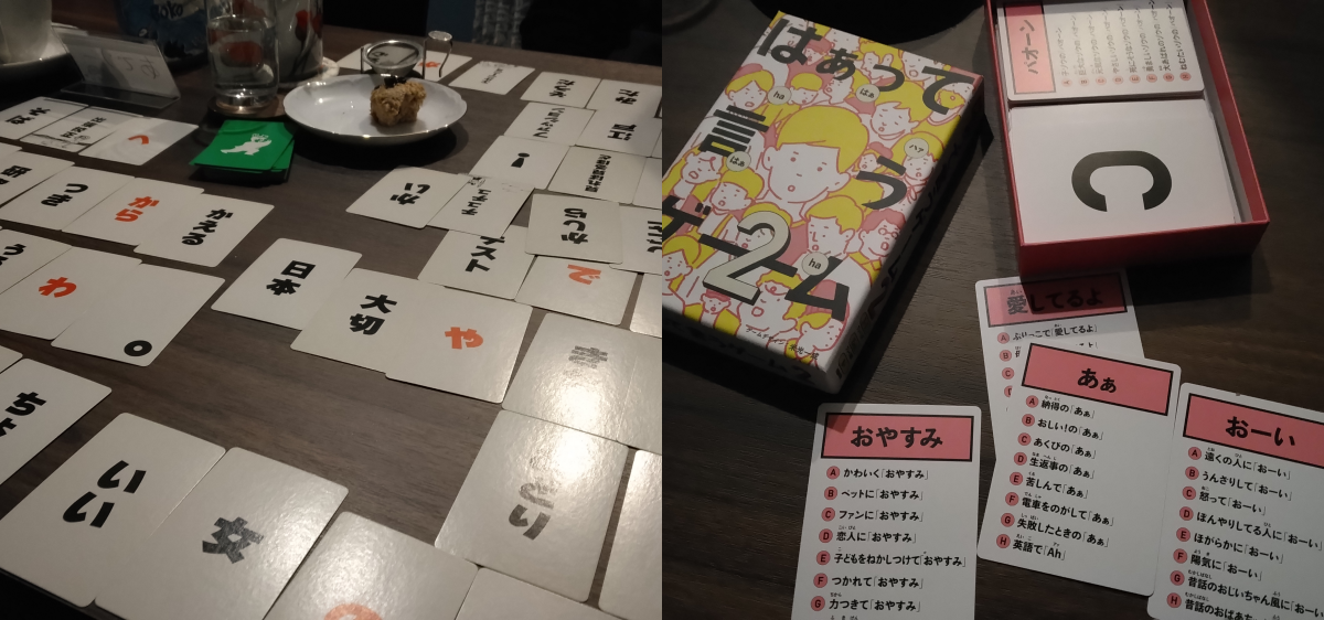ずっと企画倒れに終わっていたゲーム会を、今回初めて実施することができました! 旅行会に引き続きご参加のCさんをお迎えし、急きょテーマを変更して、Cさんご希望の日本語に関するゲームを楽しみました。2つのゲームをじっくりプレイしましたが、どちらもシンプルなルールながらいざやってみると奥が深く、絶妙なバカバカしさも含まれ、とても楽しい時間となりました。
