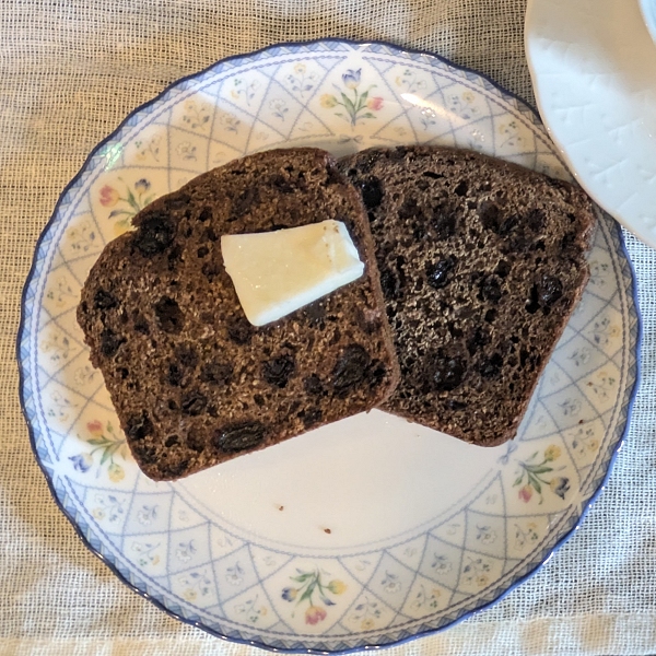 紅茶と有機黒砂糖で漬け込んだドライフルーツ入のケーキ。伝統的に薄切りにしてご提供します。