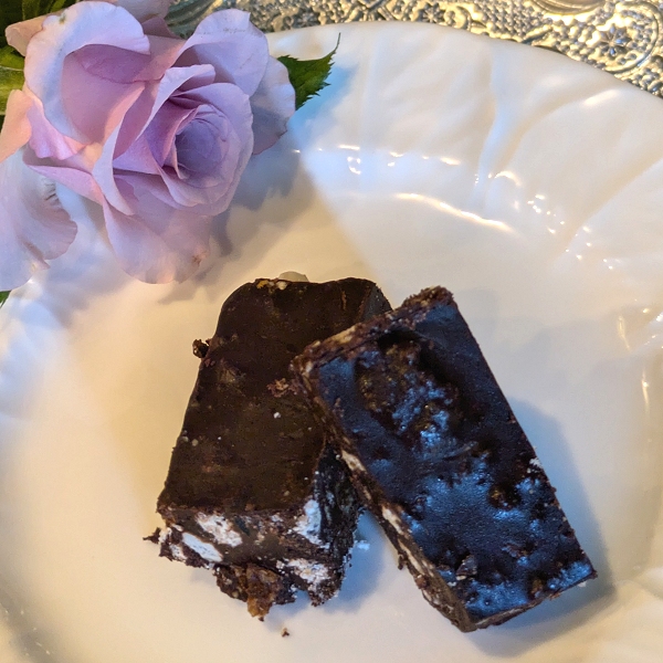 100%カカオマスから作ったチョコレートに、砕いた全粒粉クッキーとドライフルーツ、ナッツが入っています。ケズウィック風の大人の味をお楽しみ下さい。(植物性原料のみで作っています。)